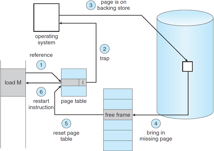 - Disk read가 끝나면 page tables entry에 기록하고, valid bit를 갱신한다.