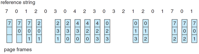 9 page faults. -> 이보다 적게 page fault가 날 수 없다.