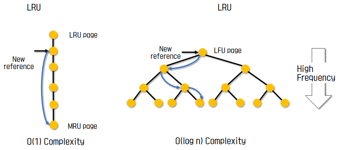 참조 횟수를 비교해주어야 하므로 리스트로 구현하면 최악의 경우 O(n) 이 걸린다.