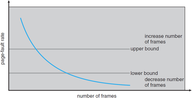 - page-fault rate가 상한값을 넘으면 프레임을 더 할당한다.