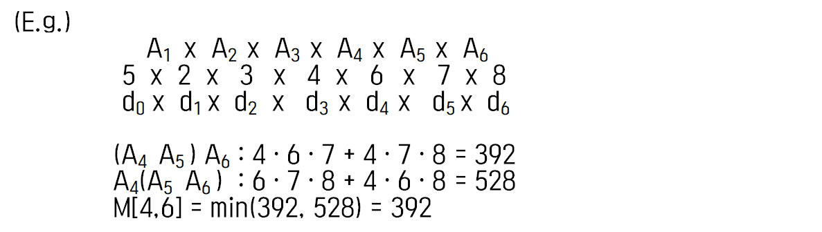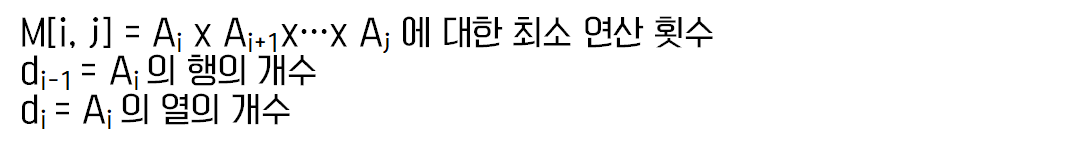 이 연쇄 행렬 곱셈 문제는 다이나믹 프로그래밍을 통해 구할 수 있다. optimal 한 부분 수열을 이용하는 것이다.
