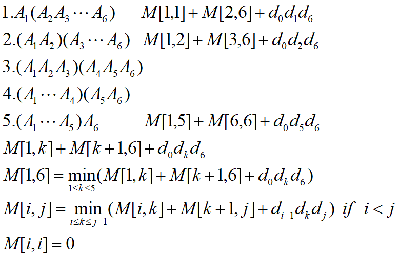 따라서 M[1, 2] 부터 M[N-1, N]을 구하고, M[1, 3] 부터 M[N-2, N] ... 이런 식으로 2차원 배열 M에 대해 오른쪽 방향으로 대각선을 채워나가면서 궁극적으로 M[1, N]을 구하면 되는 것이다.