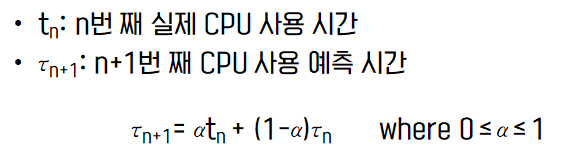 CPU burst time을 알 수 없다. 따라서 과거의 CPU 사용을 보고 예측한다.