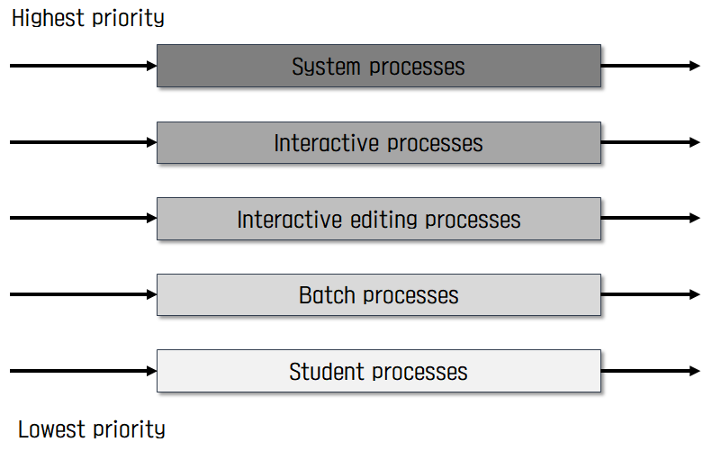 interactive한 프로세스들은 우선순위가 높고, 그렇지 않은 프로세스들은 우선순위를 낮게 지정한다.